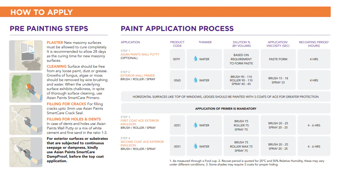 • effort and money during application? Opt for Ace Exterior Emulsion - a water-based exterior wall finish with unique water resistance technology.