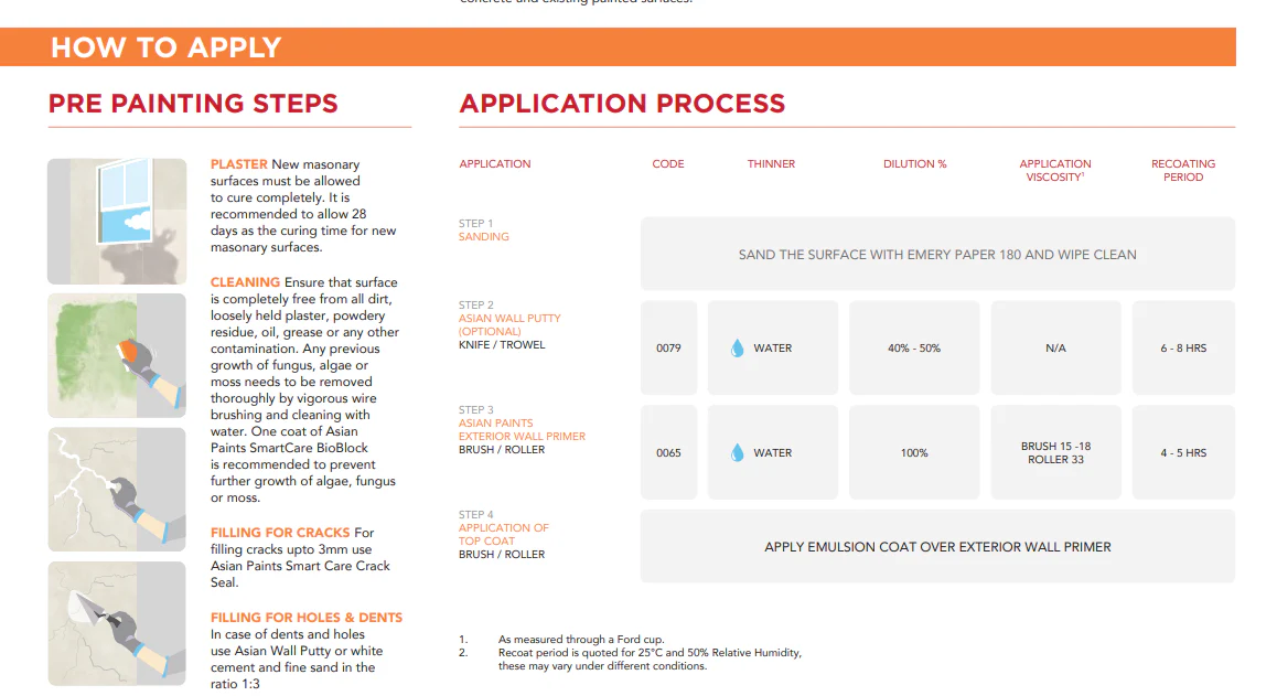 • It does not chalk and can easily be applied on cured fresh plaster. With this exterior primer you will get extra whiteness and excellent opacity on your walls.