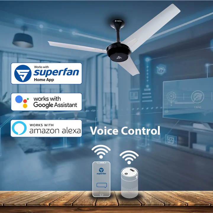 Super Q Duocool 1200 mm (48") IOT Fan works with Superfan app, Google Assistant and amazon Alexa. It s yet another Superfan innovation that redefines what thermal comfort with fans could be. It exploits IoT technology to enhance thermal comfort sustainably and consumes just 35 Watts. Superfans are India's first and most energy efficient fans and the only ceiling fans with 5 years warranty.